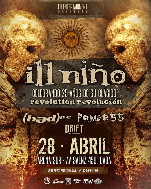 El metal alternativo volverá a sacudir Buenos Aires el próximo 28 de abril de 2026 con una de las giras más esperadas por los fans del nu metal y el rock pesado: Ill Niño, Hed PE y Primer 55 se presentarán en Arena Sur (Av. Sáenz 459, C.A.B.A.), prometiendo una noche cargada de energía, nostalgia y poder. Las entradas ya están disponibles a través del sistema Passline Argentina, y quienes habían adquirido boletos para el evento “Ill Niño + Hed PE + Adema en Argentina 2025” podrán utilizarlos para esta nueva fecha, sin necesidad de realizar ningún cambio.